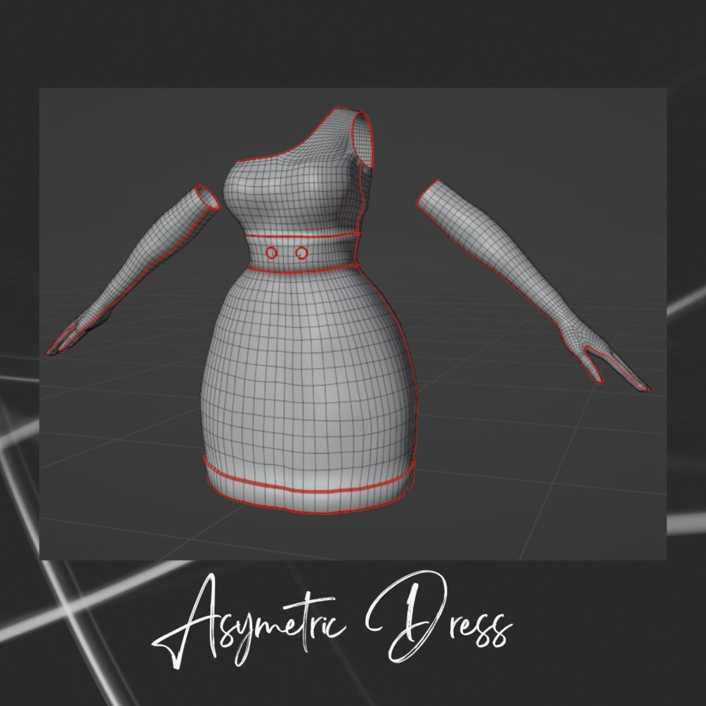 - Asymetric dress + gloves fbx (18,734k tris)